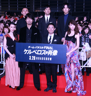 [シネママニエラ]高橋ヒロシ作の青春不良漫画「クローズ」の最新映画化作品『クローズEXPLODE(エクスプロード)』の完成披露試写会が4月7日、東京国際フォーラムで開催され、主演の東出昌大、早乙女太一、勝地涼、KENZO(DA PUMP)、矢本悠馬、奥野瑛太、遠藤雄弥、柿澤勇人、丞威、深水元基、やべきょうすけ、ELLY(三代目J Soul Brothers)、岩田剛典(三代目J Soul Brothers)、永山絢斗、柳楽優弥、山本又一朗プロデューサー、豊田利晃監督、そして飛び入りで原作者の高橋氏の総勢18名が登壇し、同作の魅力と撮影時の思い出を語った。